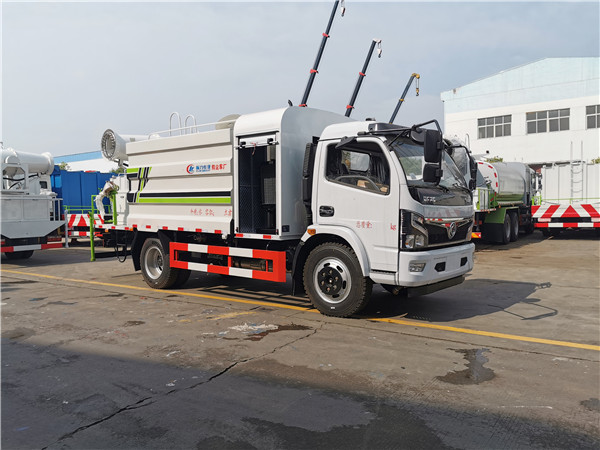 抑尘车时先停车,后请先行将雾炮水泵关闭,等待10-15秒 后风力将泵内剩余水雾吹出,在关闭风机,当风叶完全停止转动后,在将开机前上下左右所设置的角度及方向回位,(风机回位最佳位置为风筒水平平行,风筒横向与罐体平行动作完成)。在行断开控制系统总开关,在关闭发电机组送电总开关,油门递减为怠速状态,拉动熄火开关直至熄火,然后回位。