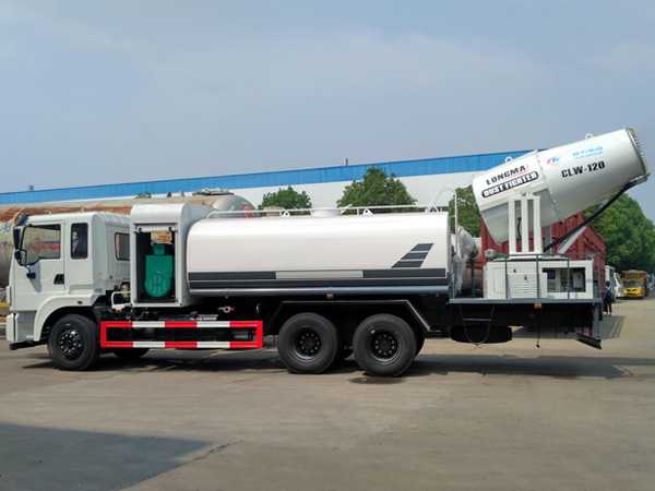 “雾炮车”全称为多功能抑尘车,因为外形酷似一门大炮,所以被人们形象地称为“雾炮车”。“雾炮车”通过特制的高压雾化和双管环形喷圈,可以喷出60多米高,100多米长的水雾,水雾将悬浮在空中的粉尘颗粒吸附、聚合、沉降,达到消除污染物和降霾效果,有效降低PM10和PM2.5浓度,降尘、抑尘效果明显。其喷洒耗水量仅为传统洒水车的两到三成,但覆盖面积却可以高出四到五倍,且不会造成地面大量积水而影响市民出行。