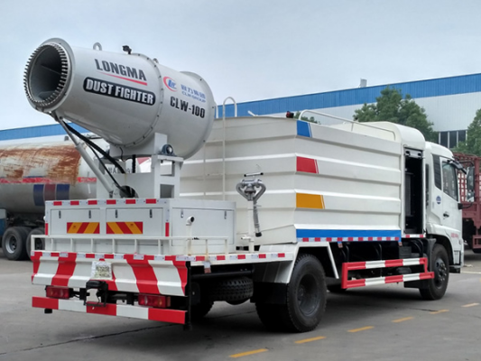 新款东风天锦11方雾炮车又称:洒水抑尘车,雾炮降霾车,多功能雾炮洒水车,喷雾降尘车,绿化喷洒车,也被称为“治霾神器”的一种环保远射程高空喷雾车,东风天锦抑尘车装备的雾炮可喷50-80米高的水雾,并且可以360度全方位旋转,可遥控操作。东风天锦雾炮车可用于喷雾降尘、城市雾霾治理等工作,经环保部门测试,其可将空气中的PM10浓度降低15%左右。